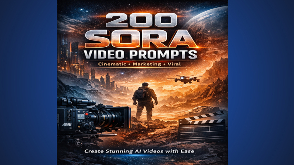 Sora Video Prompt Mastery: 200 Professional Prompts is not a casual prompt list. It is a production‑level playbook built for creators who want results that look intentional, cinematic, and commercially viable. Every prompt in this book is designed with technical precision — camera bodies, lenses, frame rates, lighting setups, motion logic, and realism tags — the same language used by professional filmmakers and visual directors.